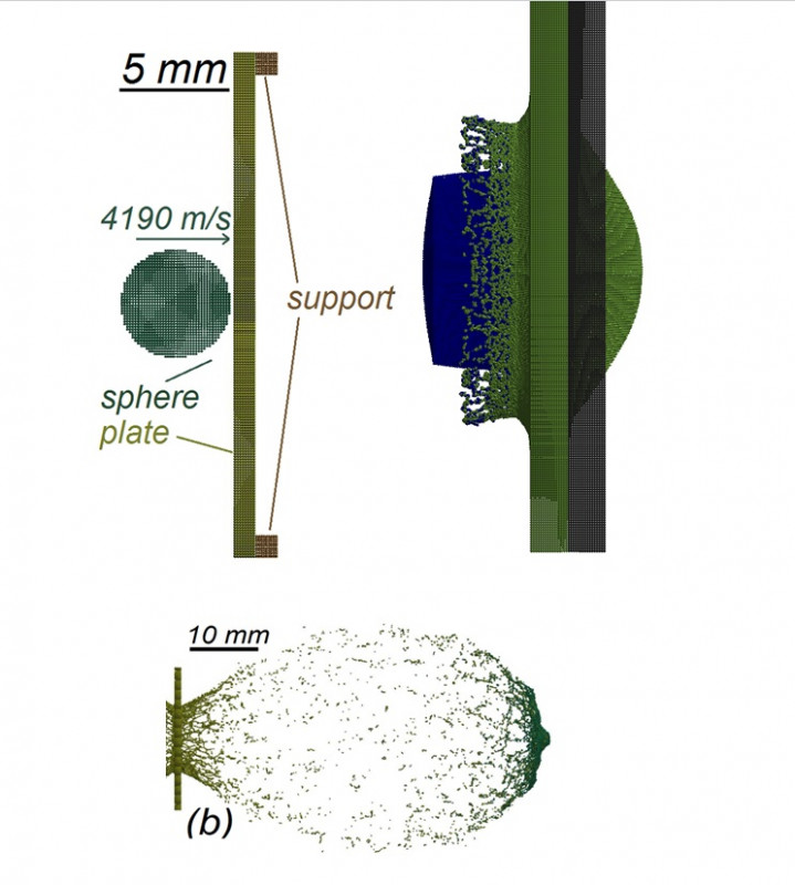 Численное исследование взаимодействия экранов для защиты космических аппаратов от космического мусора и частиц микрометеоритов.