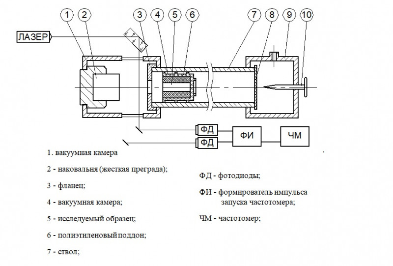 Рис. 5. Функциональная схема установки для определения динамического предела текучести по методу Тэйлора.